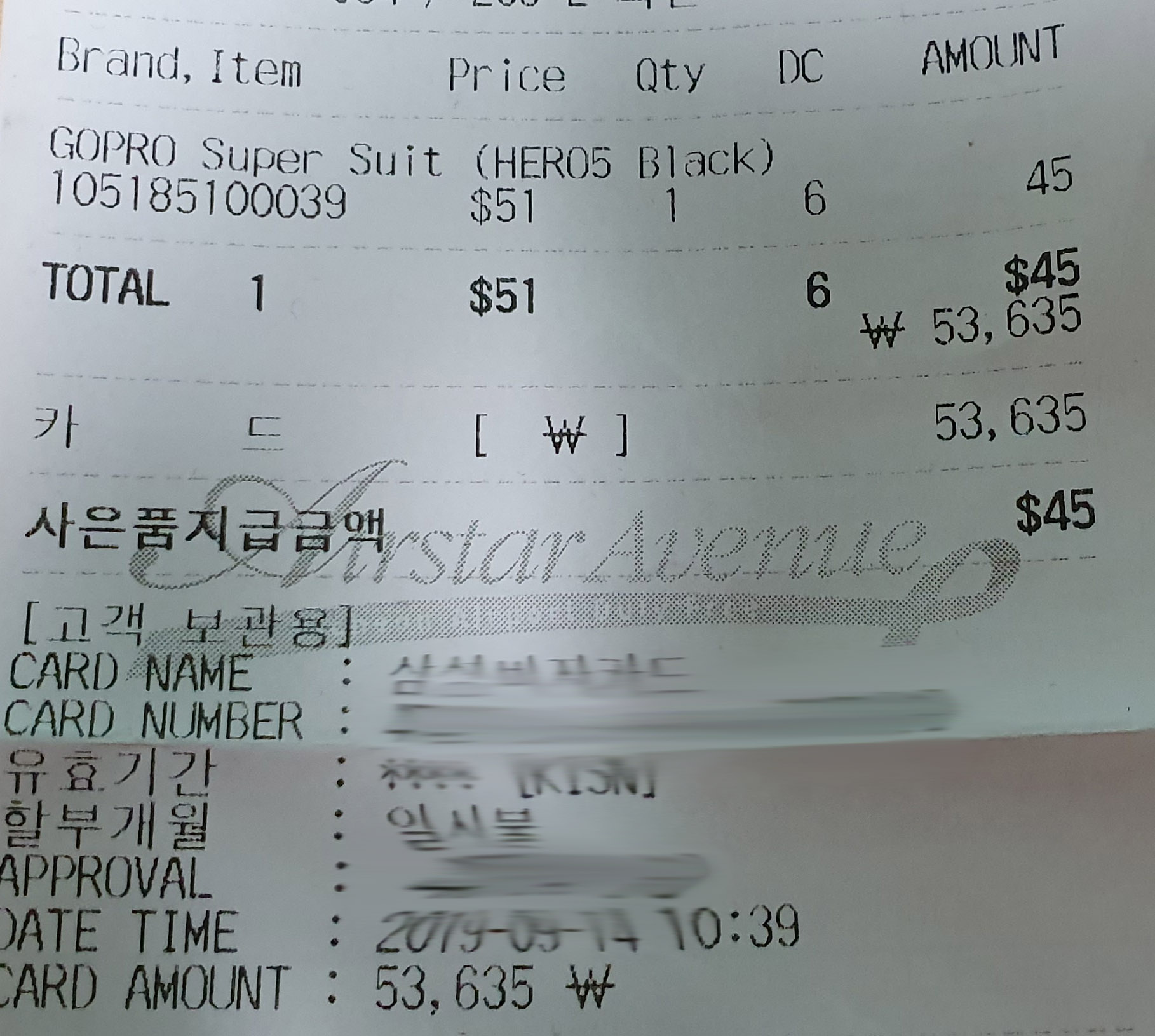 발리로 가는 길, 인천공항 신세계 면세점에서 고프로 슈퍼슈트를 구입했습니다.