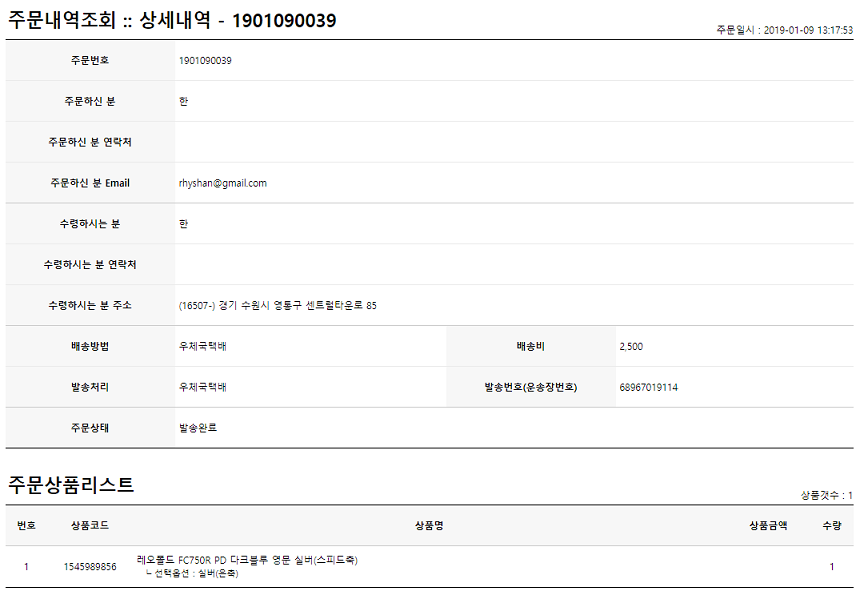 19년 1월 9일 주문한 제품으로 상태 매우 좋습니다.