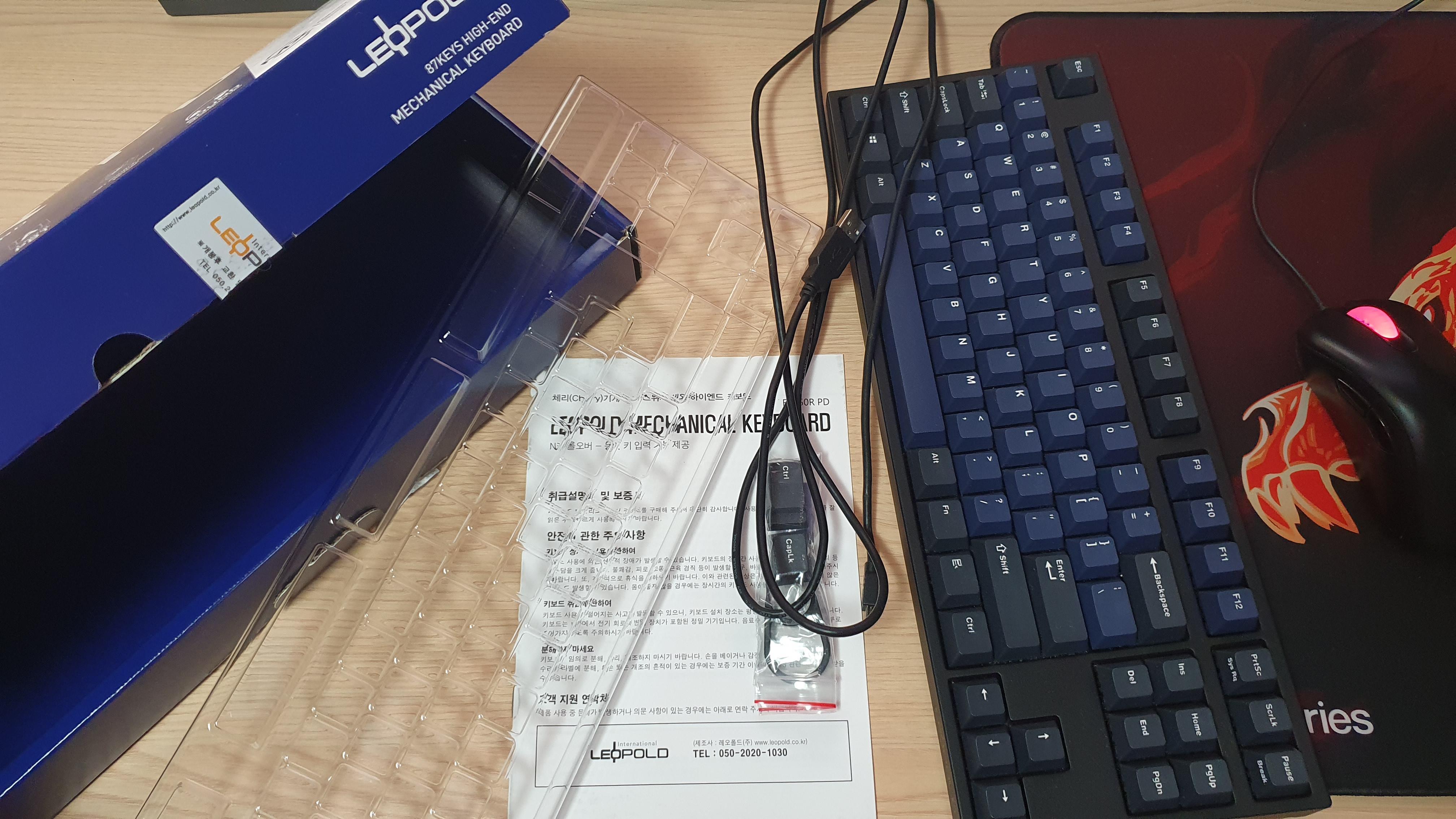 취급설명서 및 보증서, Ctrl / Caps Lock키, 키캡 리무버, USB 케이블 및 본체입니다.