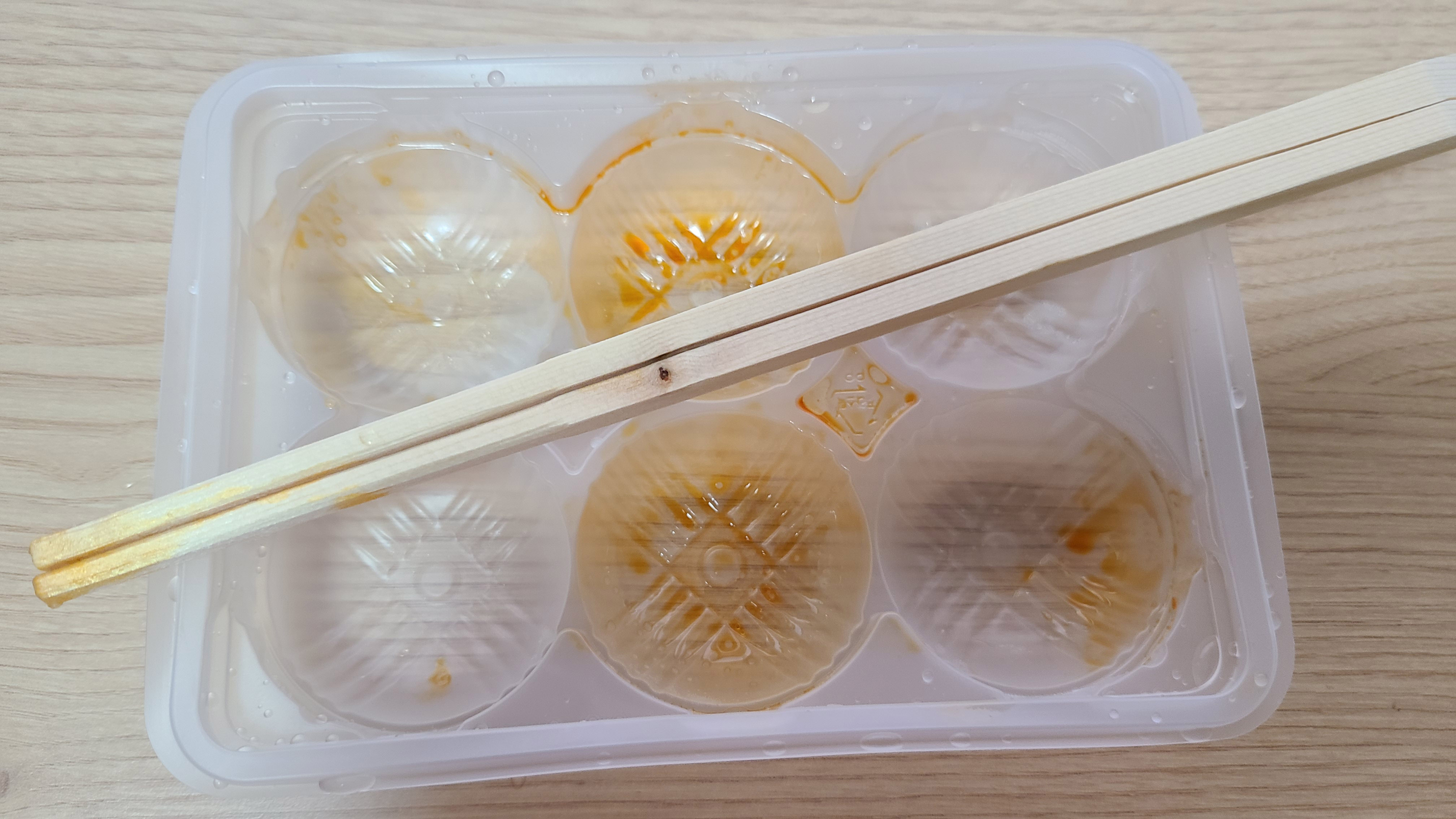 닭가슴살을 둘러싸고 있는 감자 전분 만두피가 야들야들하면서 쫄깃해 식감이 좋습니다.